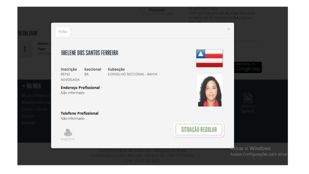 O CNA é o Cadastro Nacional de Advogados do Brasil. Se você buscar seu advogado por lá e não encontrar, fique atento. Se quiser, pode testar com a minha: OAB/BA (BA é a Seccional) 65.742.